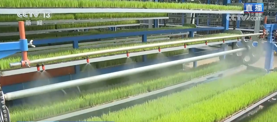 距離這片農田不到1公里,還有為大田育秧的育秧工廠。在智能化的控制下,秧苗生長期所需的光照、溫度、濕度都能實現精準調控,讓種子在最適宜的環境中成長為茁壯的秧苗。