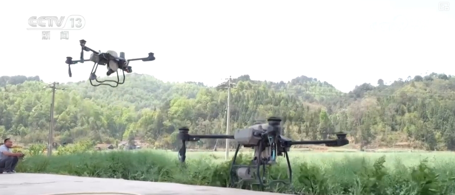 在長順縣擺所鎮,正在路邊吃午餐的這群年輕人是農業無人機飛手。最近,當地油菜即將進入結籽階段,他們要在結籽前這一關鍵時期,對全縣的7萬多畝油菜進行混合液噴灑。