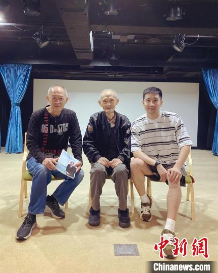 2023年5月8日,紀錄片《日暮·歸鄉》導演楊正濃與臺灣老兵金英次子金士杰(左一)、“感動中國”人物高秉涵(中)在臺北交流。(片方供圖)