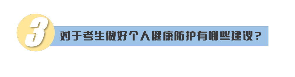 考生要做好個人防護,當好自身健康第一責任人。考前盡量減少聚集和流動,不去人員密集場所。同時,調(diào)整好心理狀態(tài),保證合理的飲食、充足的睡眠、適當?shù)纳眢w鍛煉,如有不適,要及時就醫(yī)治療,謹防因身體不適而影響考試。對于發(fā)熱或者突發(fā)急病等考生,也不必擔心恐慌,各地考點都制定了相應的預案。