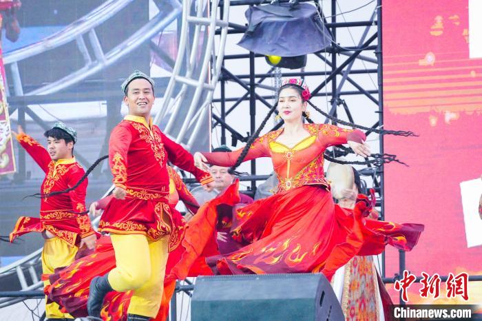 環塔拉力賽事舉辦期間,新疆多地上演民族歌舞表演。楊子涵 攝