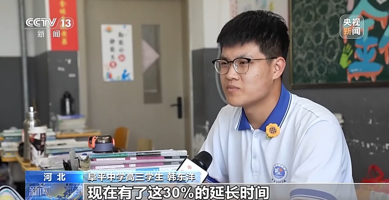 河北省今年為360名殘疾考生提供了包括延長考試時間、提供特殊試卷、配備引導員等必要支持和合理便利,確保每一位殘疾考生都能平等、自信地參加考試。考生韓東洋,因右手殘疾,用左手書寫,速度較常人會慢三分之一。今年高考,經申請評估,他每科的考試時間可以延長30%。這份寶貴的“時間禮包”,讓他心里踏實了不少。