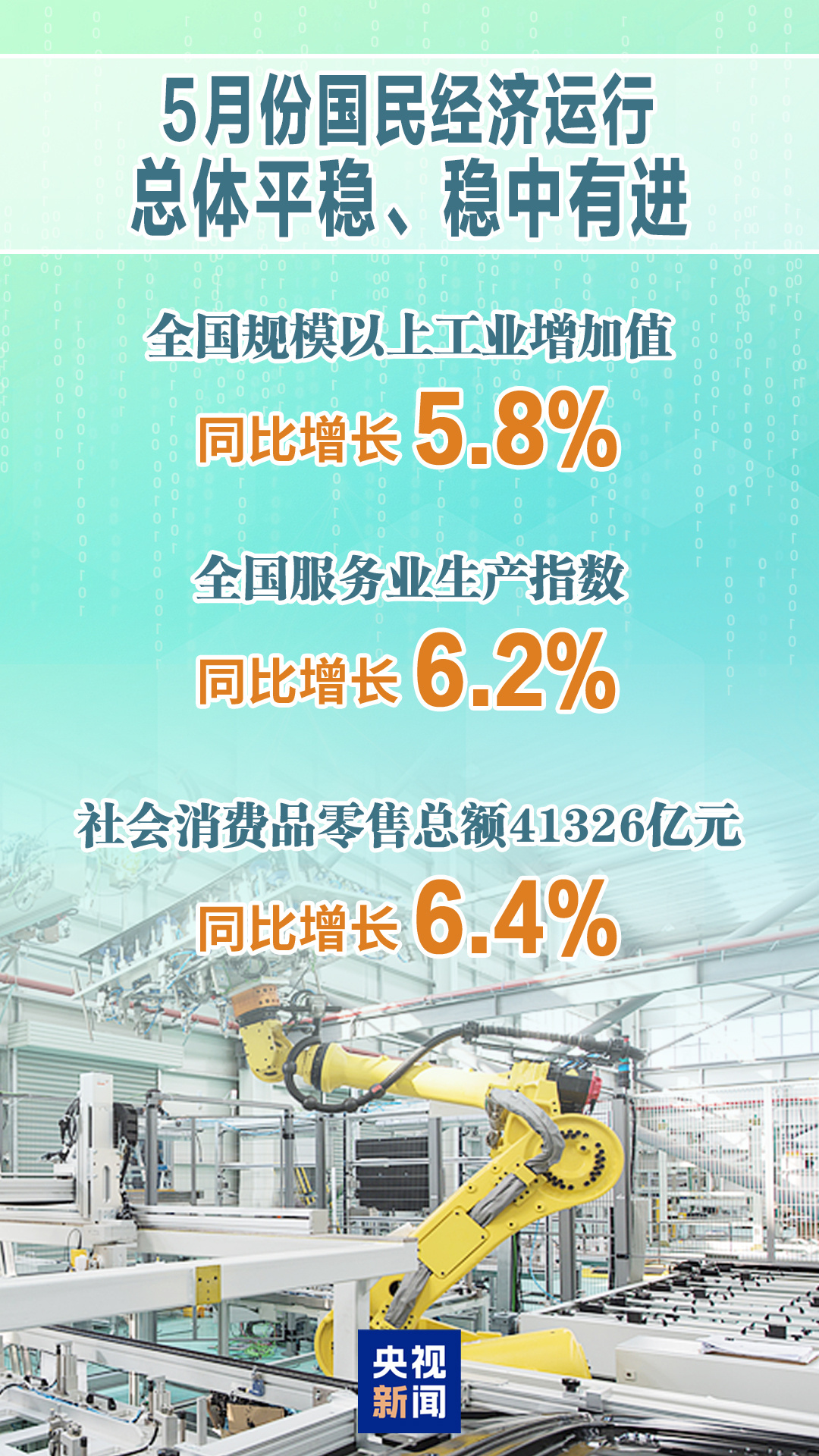 國家統計局:5月份國民經濟運行總體平穩 穩中有進