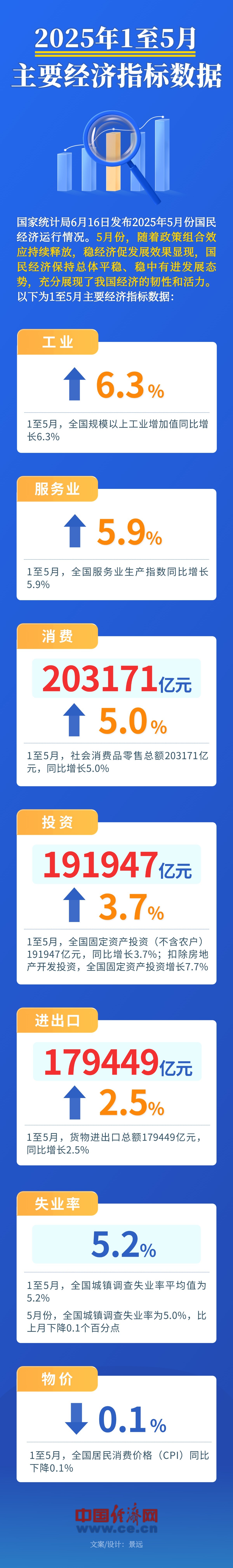 穩經濟促發展效果顯現!一圖速覽1至5月主要經濟指標數據→