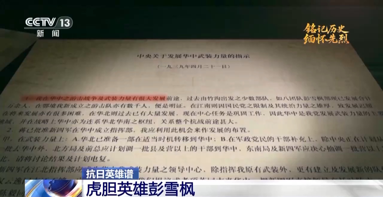 中國新四軍研究會副會長 劉春灝:當時的作戰參謀就勸他到房子里邊去隱蔽,但是彭雪楓堅持指揮戰斗,他說指揮員的位置就應該在前線。