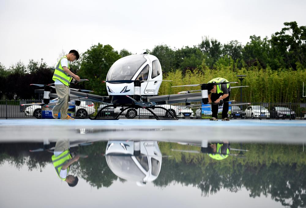6月23日,一架電動垂直起降航空器在合肥駱崗公園演示飛行。新華社發(趙獻富攝)