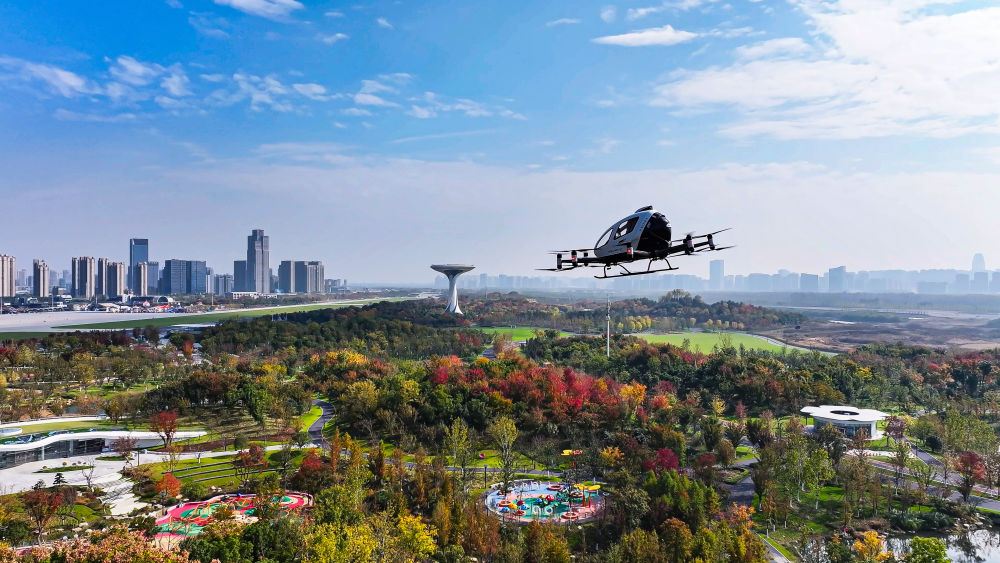 一架電動垂直起降航空器在合肥駱崗公園演示飛行。新華社發(采訪對象供圖)