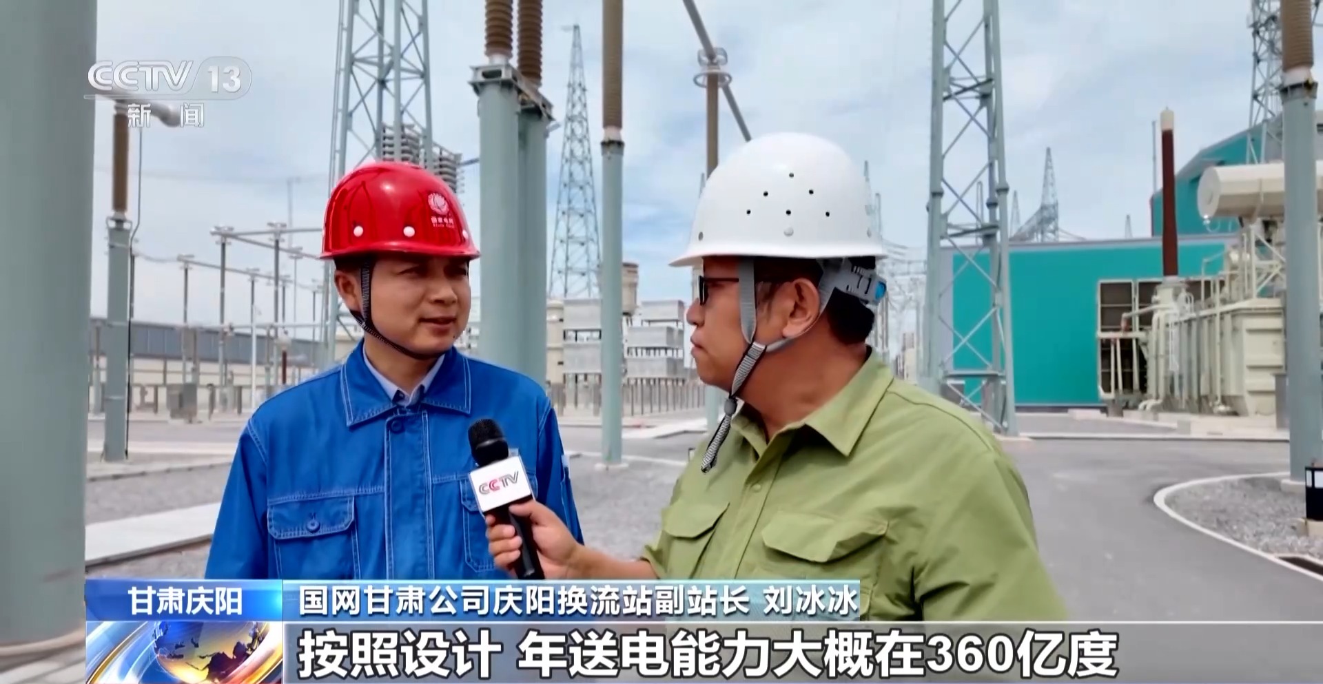 國網甘肅公司慶陽換流站副站長 劉冰冰:按照設計,年送電能力大概在360億度,可以滿足1000萬戶家庭一年的生活用電,清潔能源占比大概在50%以上。