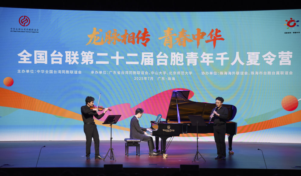 2025年7月4日拍攝的第二十二屆臺胞青年千人夏令營開營儀式上的文藝表演。新華社記者 洪澤華 攝