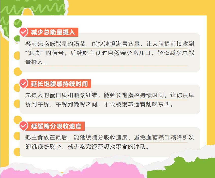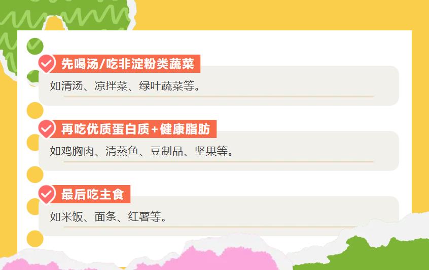 你知道嗎?吃飯時先吃什么、后吃什么,其實對健康影響不小!合理的飲食順序,能幫助我們更好地消化吸收、穩定血糖,還能控制體重。