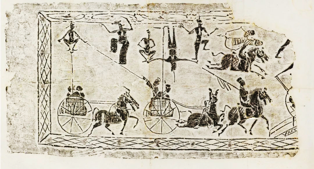 △漢代平索戲車車騎出行畫像磚 中國國家博物館藏