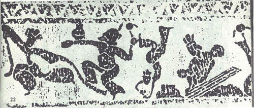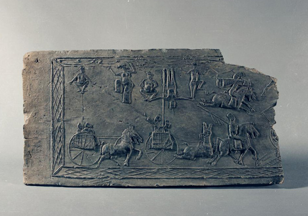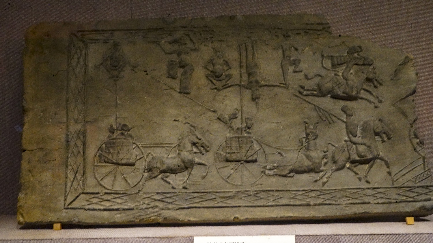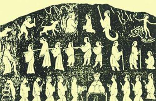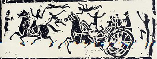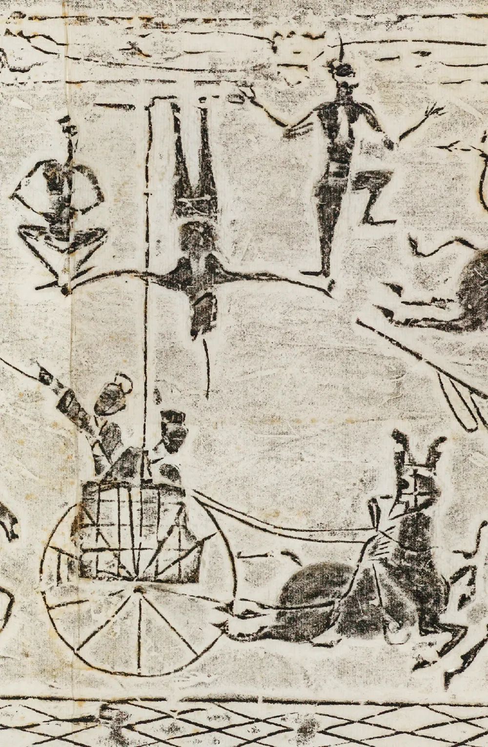 斜索戲車畫像磚以線面結合的手法分層敘事