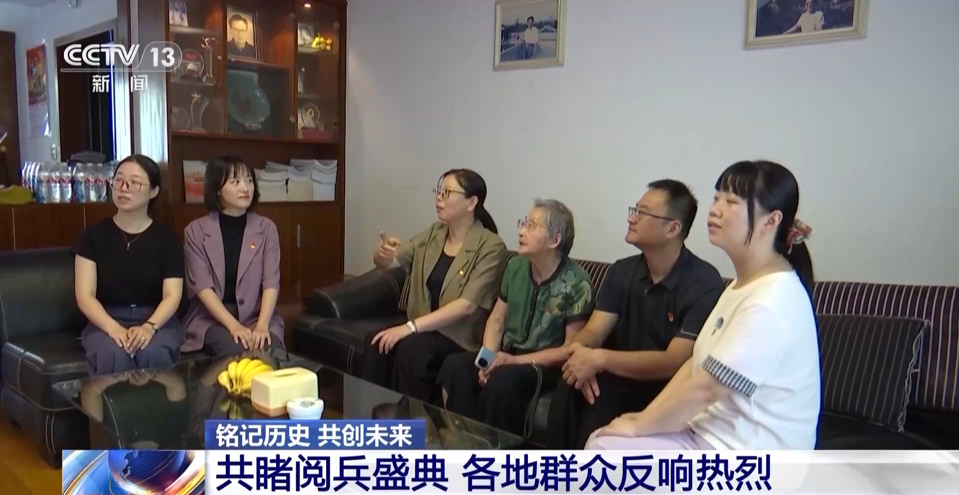 在浙江湖州93歲新四軍老戰士鄭云的家中,社區工作人員與鄭云老人一起收看大會直播,鄭云曾先后參加過抗日戰爭、解放戰爭,看完此次閱兵,她感觸頗深。