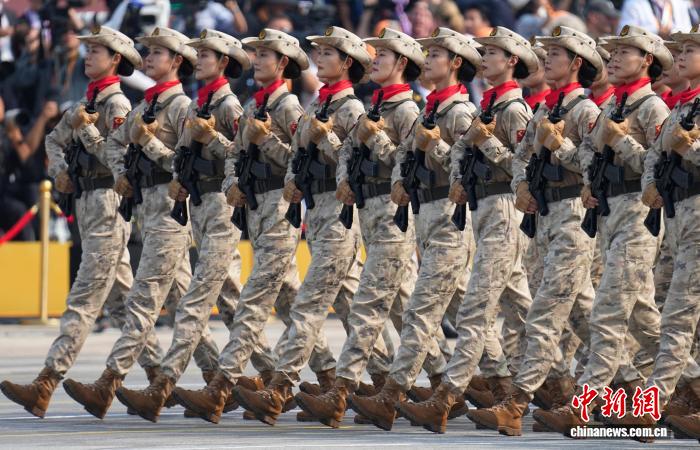 9月3日,紀念中國人民抗日戰(zhàn)爭暨世界反法西斯戰(zhàn)爭勝利80周年大會在北京隆重舉行。圖為民兵方隊接受檢閱。該方隊全部由女民兵組成,這是民兵首次亮相以紀念抗戰(zhàn)勝利為主題的閱兵活動。 中新網(wǎng)記者 趙文宇 攝
