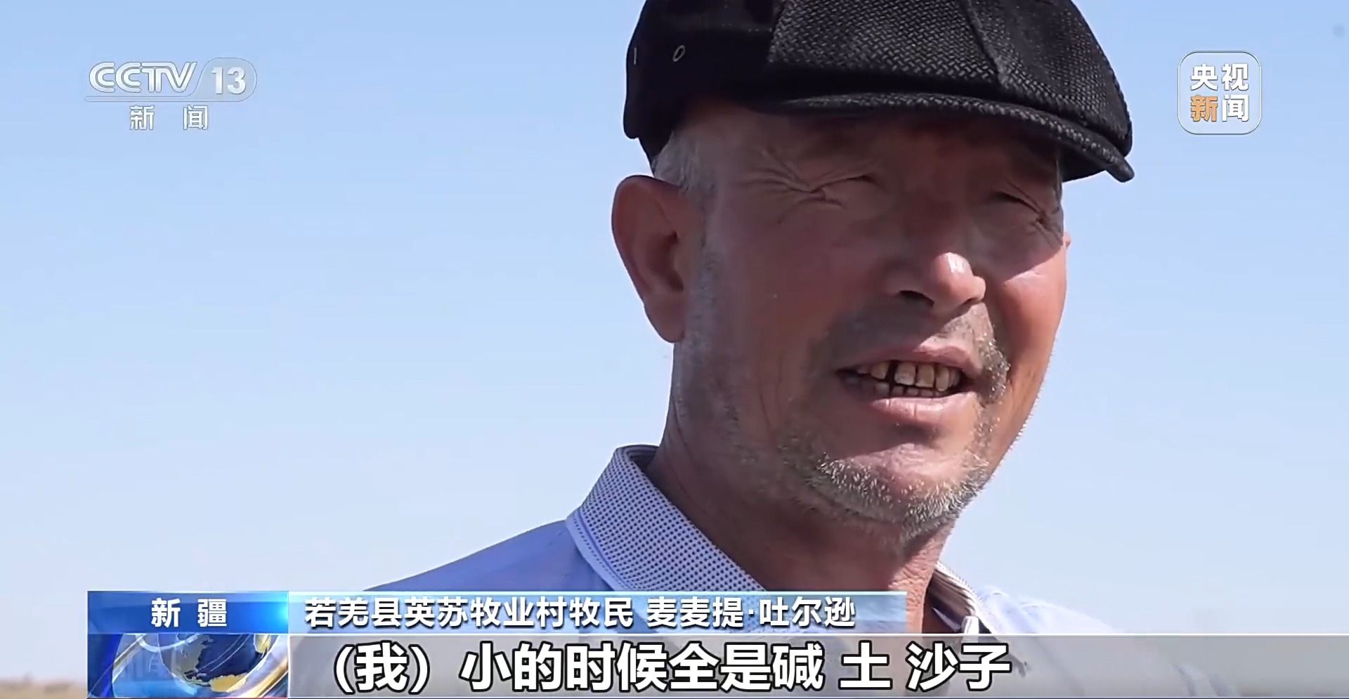 若羌縣英蘇牧業村牧民 麥麥提·吐爾遜:我小的時候全是堿、土、沙子,人走都走不動。羊沒水,也沒草,死在這個地方了。