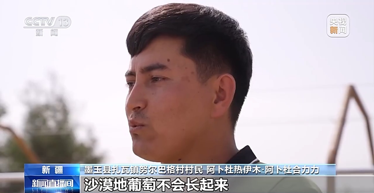 墨玉縣扎瓦鎮努爾巴格村村民 阿卜杜熱伊木·阿卜杜合力力:別人說你們是傻子嗎,你們腦子有問題,沙漠地葡萄不會長起來。