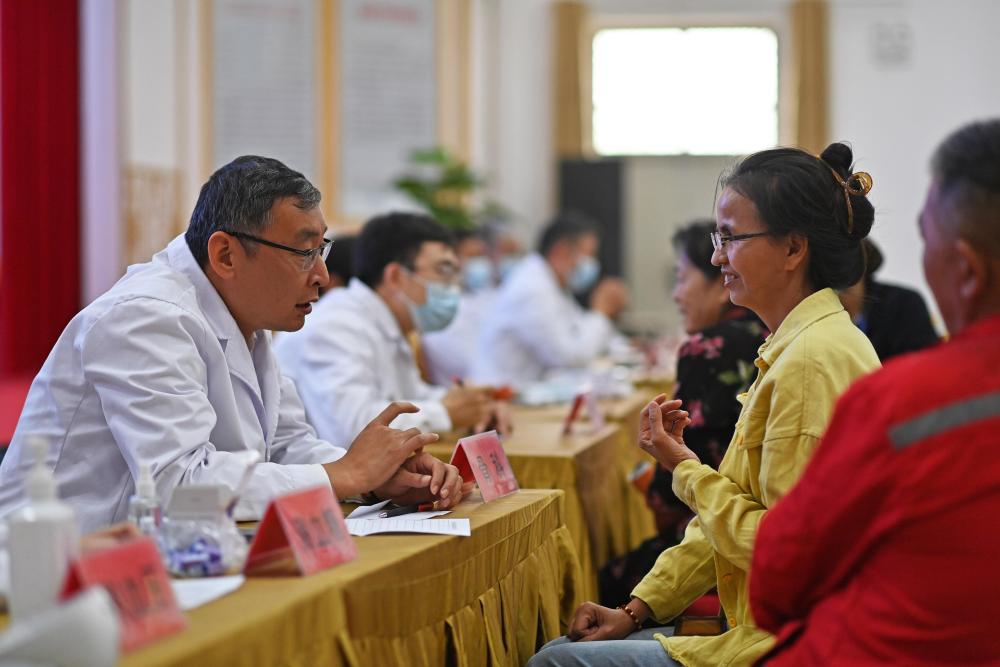9月18日,達西村村干部古力帕爾力·克衣木(右)入戶詢問村民生活情況。