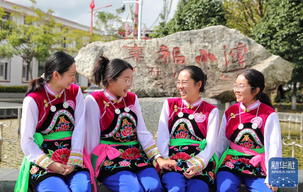 ↑ 10月31日拍攝的身穿民族服飾的小灣東鎮(zhèn)居民。