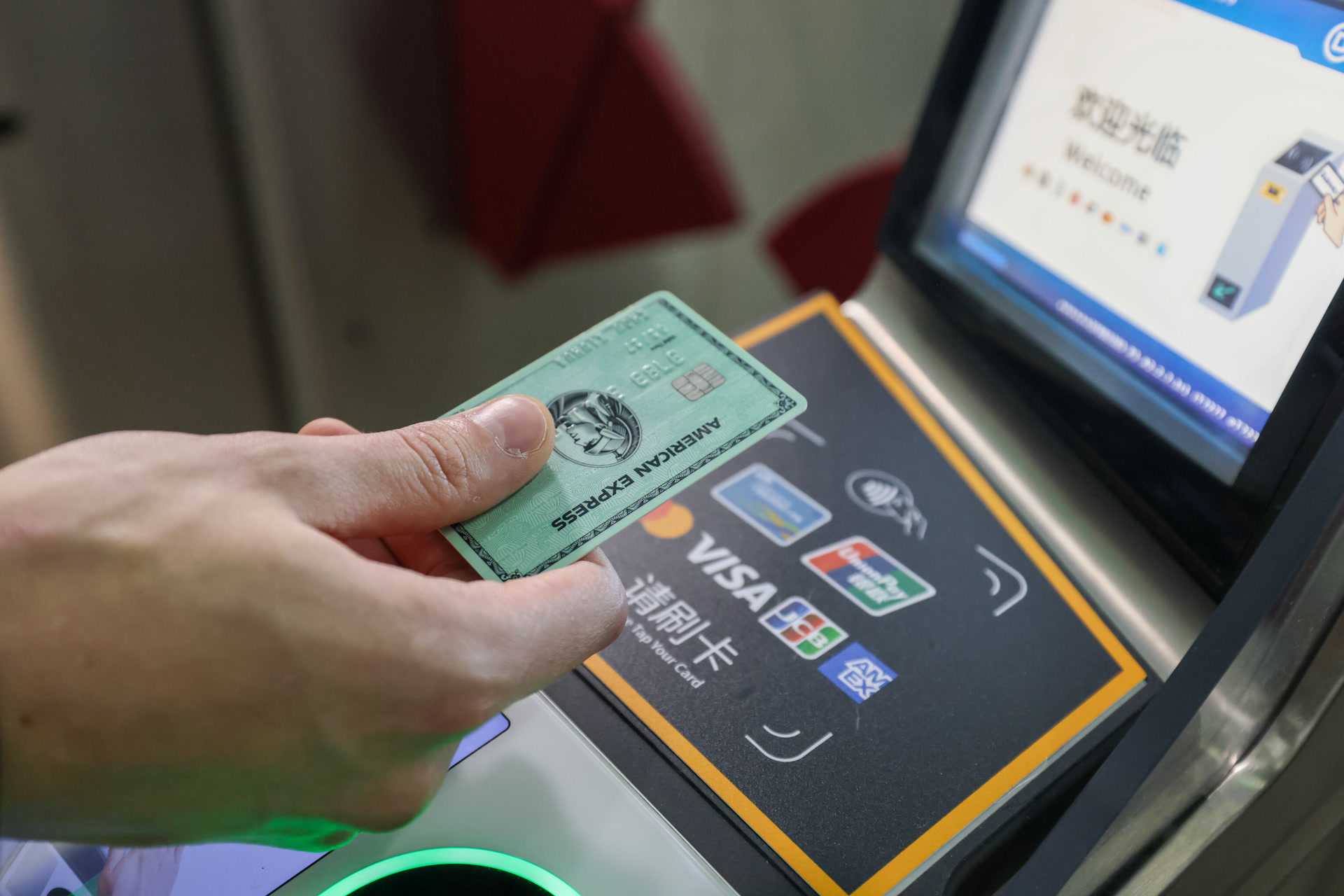 6月15日起,北京城市軌道新增支持境外發(fā)行的JCB卡和境內(nèi)外發(fā)行的美國(guó)運(yùn)通卡非接觸式拍卡過(guò)閘及購(gòu)補(bǔ)票功能。北京城市軌道成為全球首個(gè)全網(wǎng)覆蓋中國(guó)銀聯(lián)、萬(wàn)事達(dá)、維薩、JCB、美國(guó)運(yùn)通五大卡組織支付服務(wù)的城市軌道交通系統(tǒng)。 本報(bào)記者 鄧偉攝(孫宏陽(yáng)文)