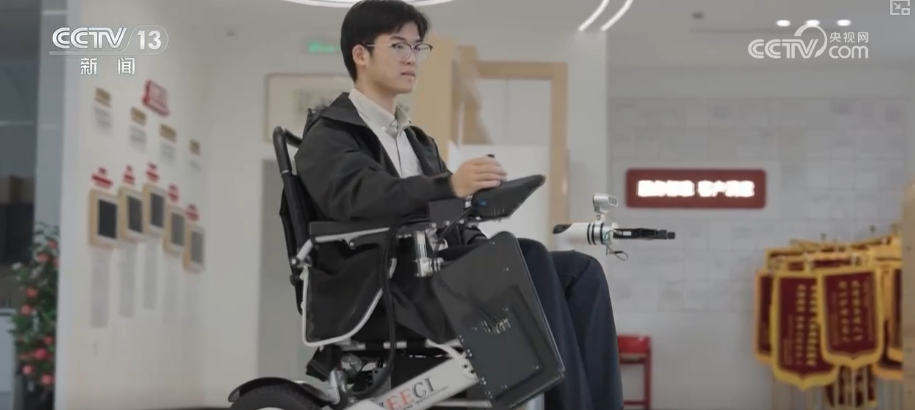在杭州西湖區,工作人員正在對眼前這款智能輪椅進行技術升級。結合失能老人手腳行動不便的痛點,這款輪椅搭載了深度相機和智能機械臂,通過內置的AI算法,使用者只需和平常一樣坐在上面,簡單用語言表達需求,輪椅就可以判斷路線,智能移動。