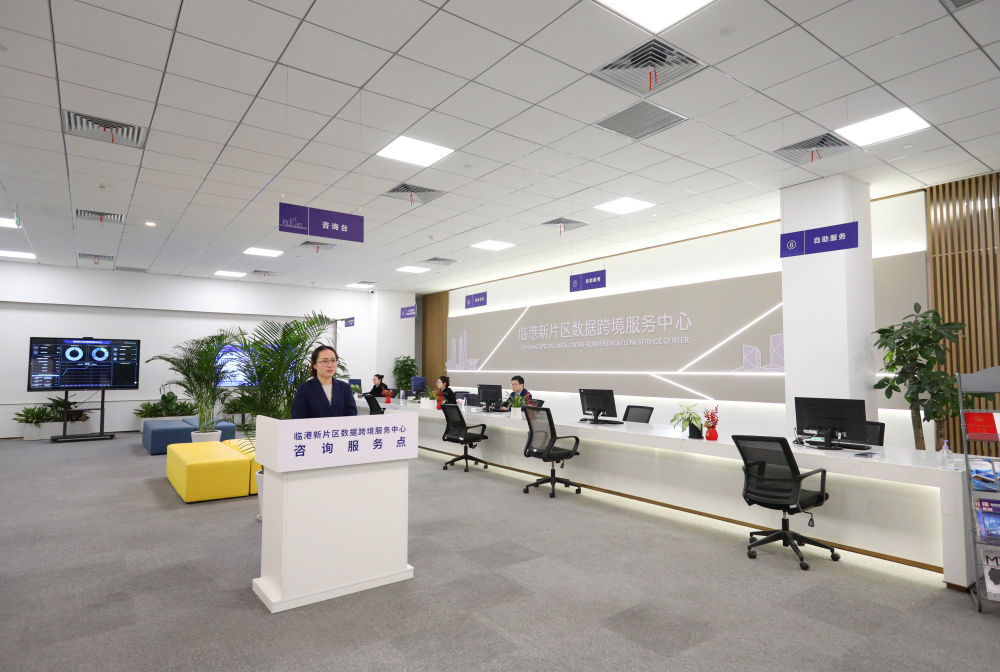 中國(上海)自由貿(mào)易試驗區(qū)臨港新片區(qū)數(shù)據(jù)跨境服務(wù)中心內(nèi)景。該中心4月7日啟用運營,致力于為數(shù)據(jù)處理者提供全方位、全流程數(shù)據(jù)跨境服務(wù),包括材料受理、業(yè)務(wù)咨詢等,在臨港新片區(qū)打造數(shù)據(jù)跨境流動的綠色通道(2024年4月9日攝)。