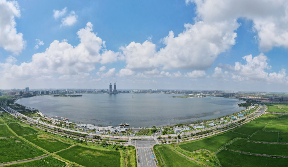 這是中國(上海)自由貿(mào)易試驗區(qū)臨港新片區(qū)滴水湖(無人機全景照片,2023年9月6日攝)。