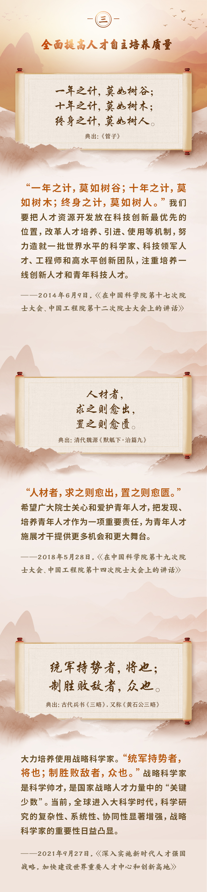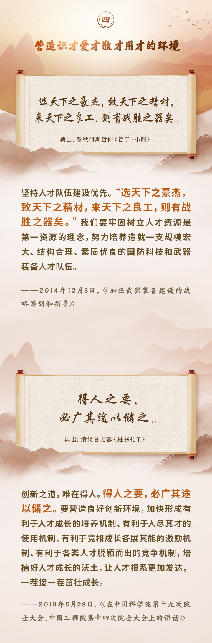 編者按:培養造就大批德才兼備的高素質人才,是國家和民族長遠發展大計。黨的十八大以來,習近平總書記圍繞人才工作發表一系列重要論述,立意高遠,內涵豐富,思想深刻,深刻回答了為什么建設人才強國、什么是人才強國、怎樣建設人才強國的重大理論和實踐問題。在這些重要論述中,總書記精妙運用古代典籍、經典名句,以古喻今、啟迪思想、激蕩精神,讓我們一起來學習!