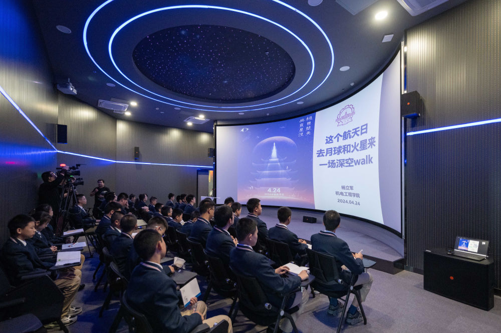 學生在哈爾濱工業大學航天館內聽中國航天日主題講座(2024年4月24日攝)。新華社記者 謝劍飛 攝