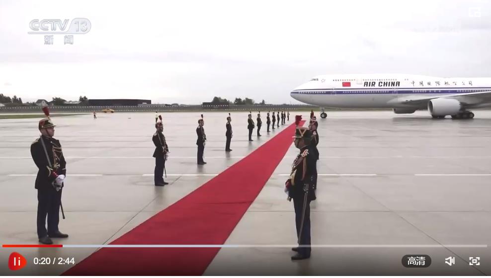 當地時間5月5日下午,國家主席習近平乘專機抵達巴黎,應法蘭西共和國總統馬克龍邀請,對法國進行國事訪問。