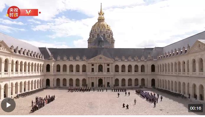 當地時間5月6日下午,在馬克龍陪同下,習近平檢閱法蘭西共和國衛隊和陸海空三軍儀仗隊。