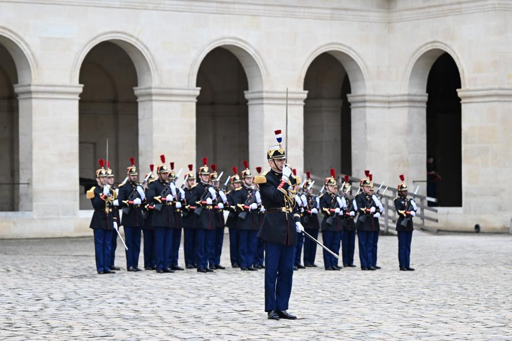 當天下午,習近平在巴黎出席馬克龍舉行的隆重盛大歡迎儀式。兩國元首檢閱法蘭西共和國衛隊和陸海空三軍儀仗隊,并觀看分列式。