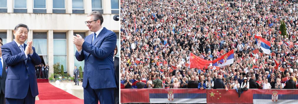 “習近平主席,我想告訴您的是,您受到全世界人民的尊重,塞爾維亞人民對您的愛戴是發自肺腑的。”塞爾維亞總統武契奇在歡迎儀式上說。上萬人的歡迎人群中,豎起緊緊連在一起的五星紅旗和塞爾維亞國旗,是中塞鐵桿情誼的生動見證。