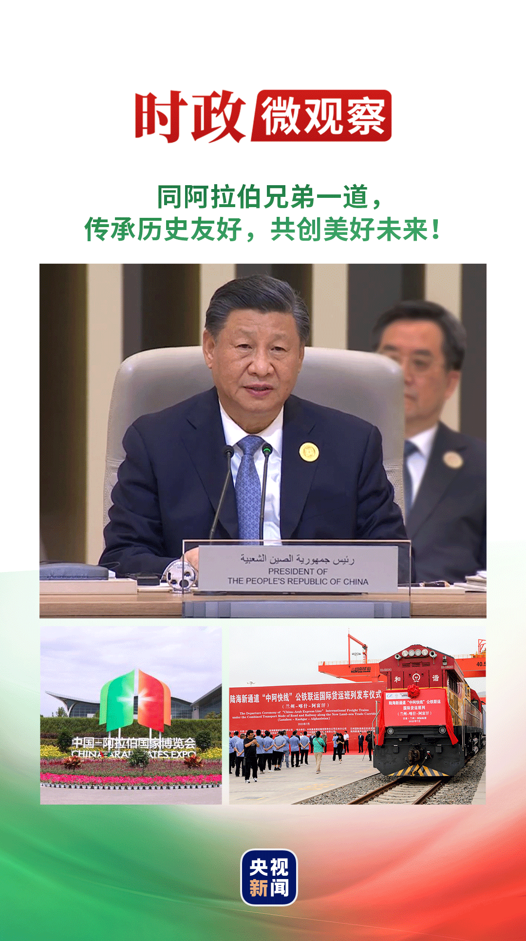 “著眼未來,中方愿同阿拉伯國家一道,繼續弘揚中阿友好精神,建設更高水平的中阿命運共同體,為構建人類命運共同體貢獻力量。”5月16日,習近平主席向第33屆阿拉伯國家聯盟首腦理事會會議致賀信時表示。