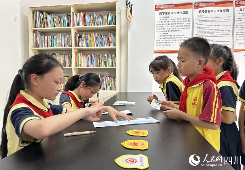 5月31日,南充市嘉陵區之江小學“美習銀行”,學生們在儲存“美習幣”。人民網記者 王波攝