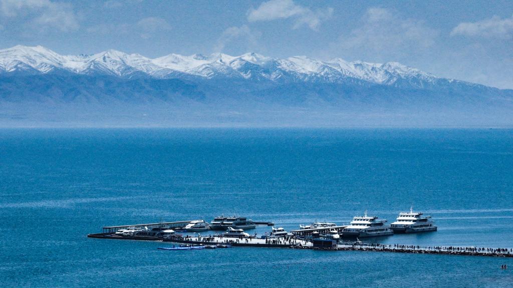 眼前的青海湖廣闊無垠,湖面宛如綢帶般綿延不絕,與遠(yuǎn)方的雪山相接,融入天際,成就了一幅如詩如畫的美景。