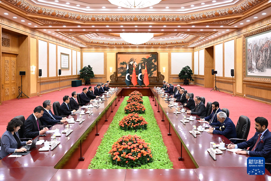 6月7日下午,國家主席習近平在北京人民大會堂會見來華正式訪問的巴基斯坦總理夏巴茲。新華社記者 黃敬文 攝