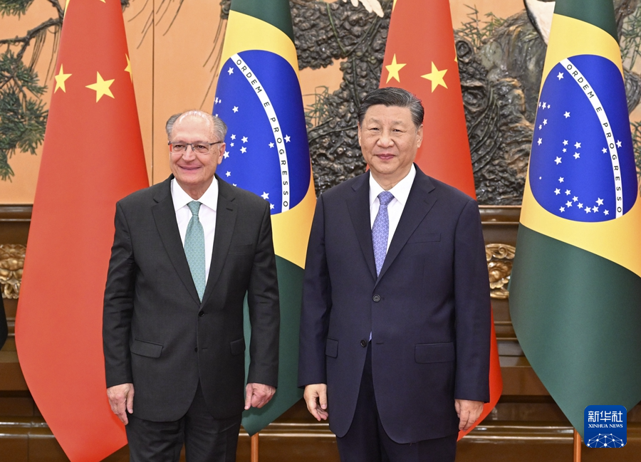 6月7日下午,國家主席習近平在北京人民大會堂會見來華正式訪問的巴西副總統阿爾克明。新華社記者 申宏 攝