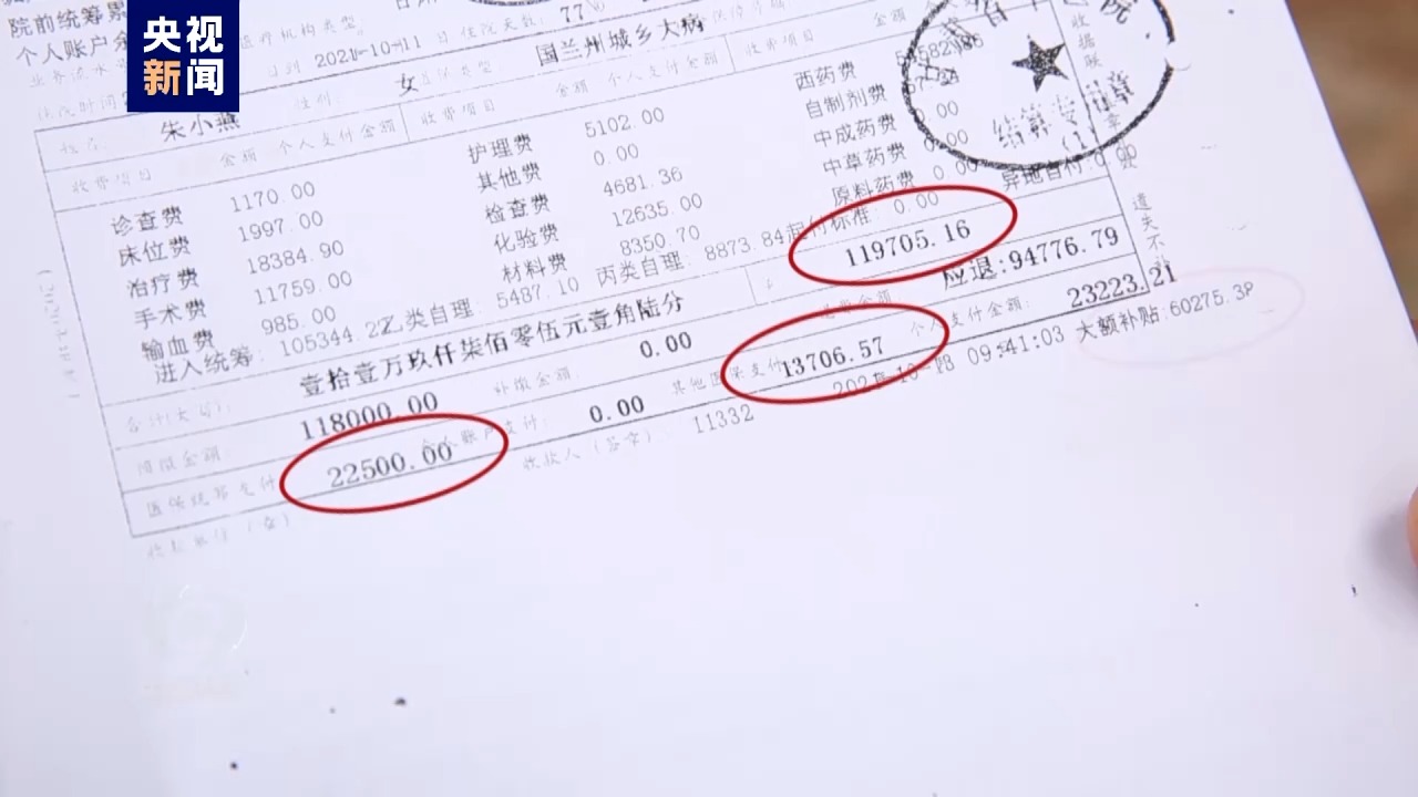 甘肅蘭州沈家嶺村村民朱小燕一家為低保戶。八年前,朱小燕查出結腸腫瘤,起初,面對醫療花費,一家人十分擔心。但讓朱小燕一家沒有想到的是,幾年間,她自費的比例在不斷降低。2021年的一次手術總共花費119705元,經過基本醫保、大病保險和醫療救助報銷后,朱小燕自費為23223元,自費比例為19.4%。而且,民政部門針對她家庭綜合情況,給予了2萬多元臨時救助,朱小燕花費了不到3000元。