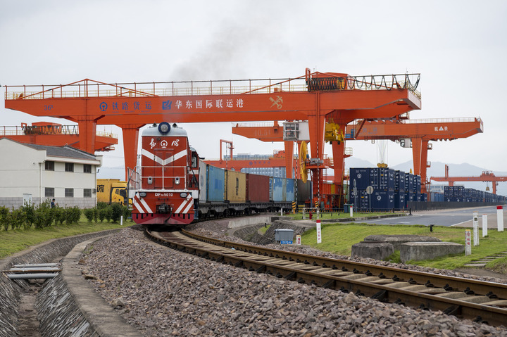 一列滿載貨物的“義新歐”中歐班列發車。拍友 胡肖飛 攝