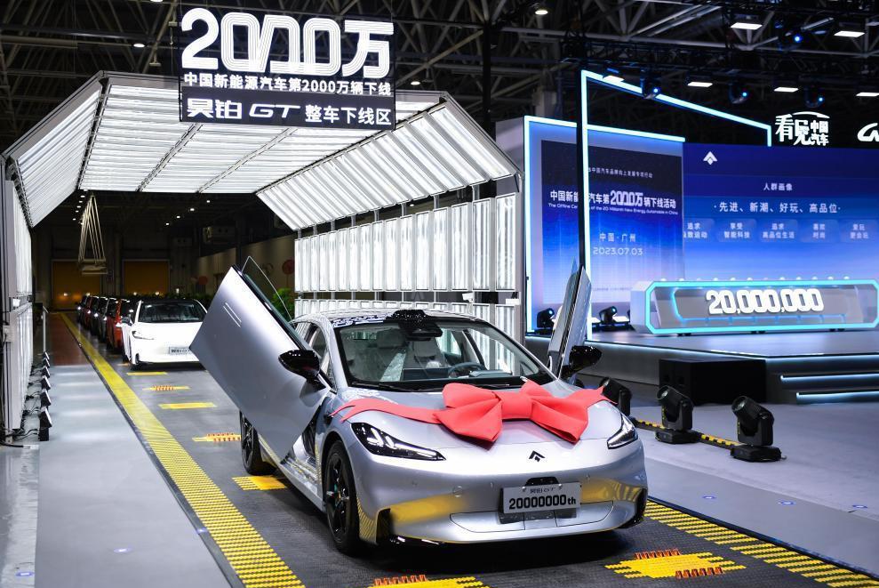 2023年7月3日,我國(guó)第2000萬(wàn)輛新能源汽車(chē)在廣州下線。