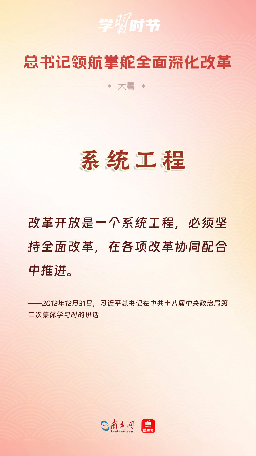 黨的十八大以來,習近平總書記親自領導、親自部署、親自推動全面深化改革工作,推動全面深化改革事業在攻堅克難中不斷邁上新臺階、取得新勝利。在驕陽似火的大暑時節,通過一組海報,讓我們共同學習習近平總書記關于“全面深化改革”的重要論述。