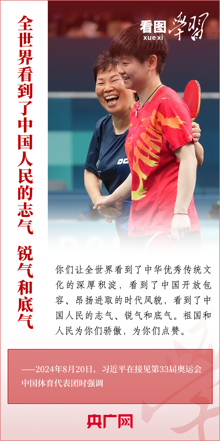 “祖國和人民為你們驕傲,為你們點贊?!?月20日,習近平總書記在人民大會堂接見第33屆奧運會中國體育代表團并發表重要講話??倳浉叨瓤隙ㄖ袊w育代表團取得的優異成績,贊揚他們充分彰顯了新時代中國力量、生動詮釋了新時代中國精神、充分展現了新時代中國形象,勉勵大家戒驕戒躁、再接再厲,為建設體育強國再立新功。一起來學習!