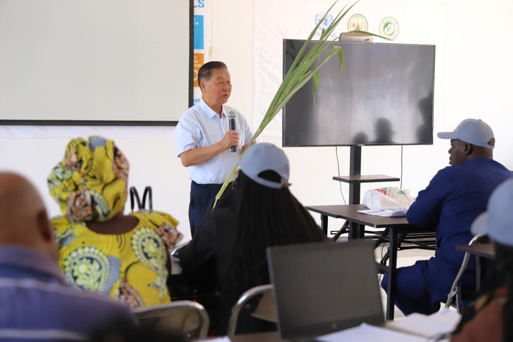 8月4日,在盧旺達南方省胡耶區,林占熺為非洲地區菌草技術培訓班授課。新華社發(黃萬晴攝)