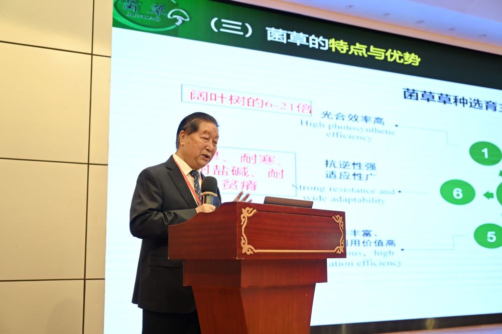 6月16日,第十九屆國際菌草產業發展研討會在福建福州舉行,國家菌草工程技術研究中心首席科學家林占熺發表《菌草技術助力落實聯合國可持續發展目標的潛力》主旨報告。新華社記者 林善傳 攝
