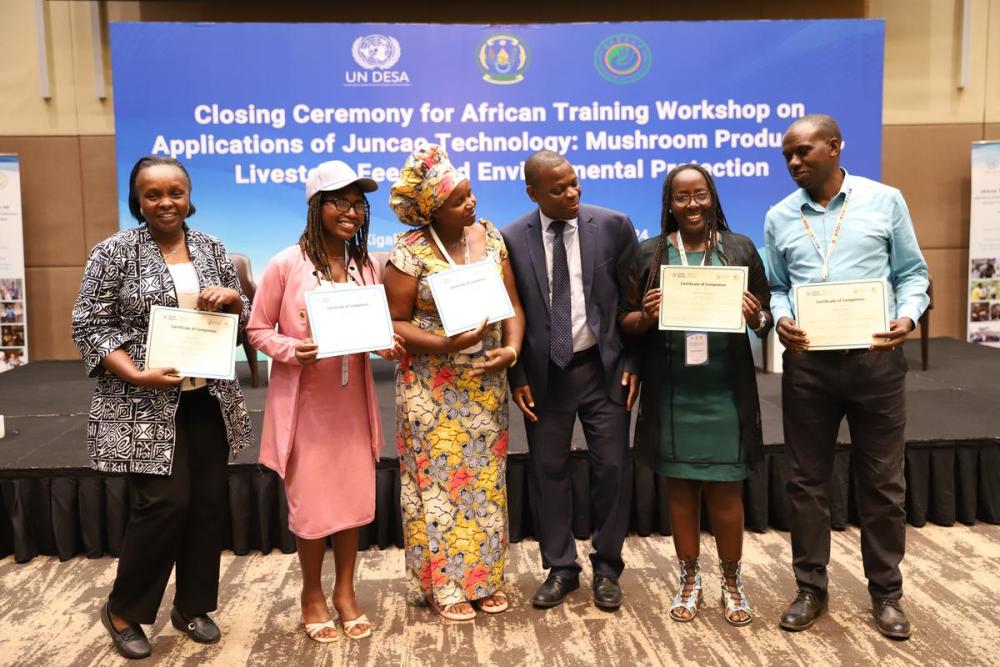 8月初,在非洲地區菌草技術培訓班舉辦期間,聯合國官員和使團代表團專程赴盧旺達考察菌草技術和產業在非洲地區的發展。“我很高興同其他聯合國官員一起,親眼見證菌草技術以實際行動造福民眾。”聯合國秘書長辦公室主任考特尼·拉特雷說,菌草技術具有“可負擔”的突出優勢,“對非洲大陸所有發展中國家很有價值、非常適用”。