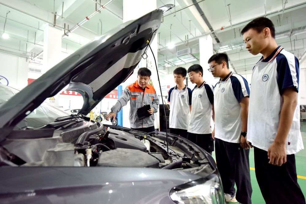 2024年6月7日,河北省邢臺市威縣職業技術教育中心教師在指導學生學習汽車維修技術。新華社記者 王曉 攝