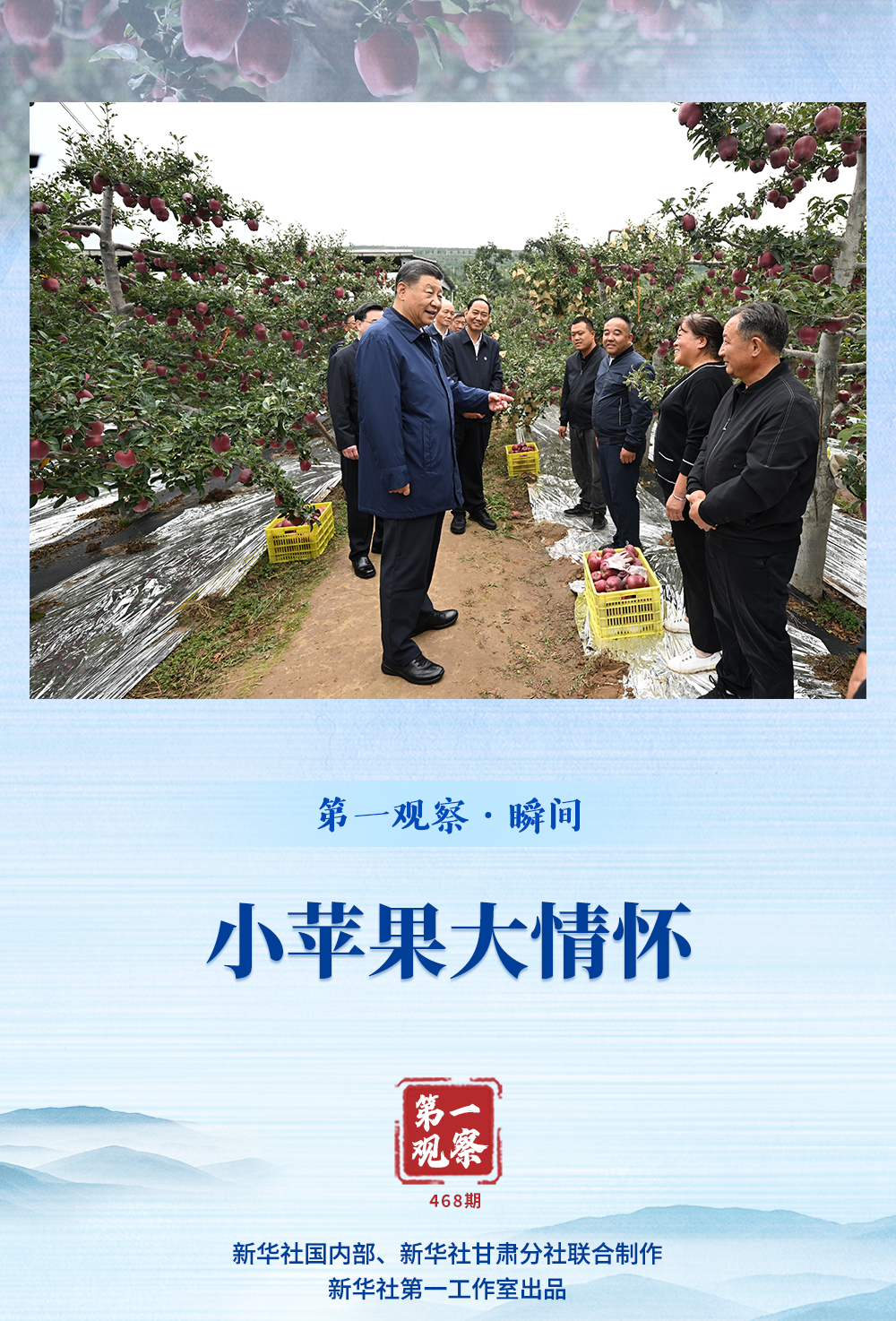 9月11日上午,習近平總書記來到甘肅天水市麥積區南山花牛蘋果基地考察。新華社記者定格了這樣一個瞬間——