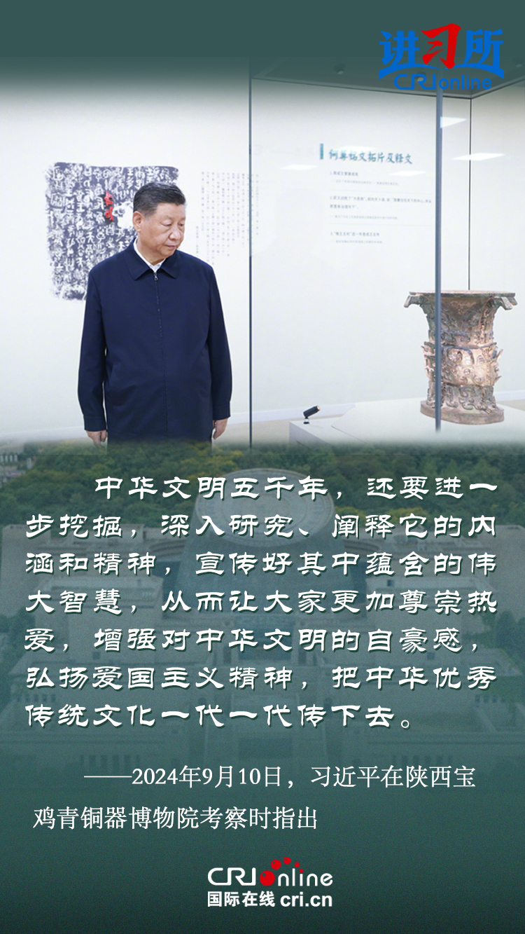 9月10日下午至11日上午,中國國家主席習近平先后來到陜西省寶雞市和甘肅省天水市考察調研。從關中到隴原,習近平走進寶雞青銅器博物院、伏羲廟、麥積山石窟,考察文物保護利用及文化遺產保護傳承情況。
