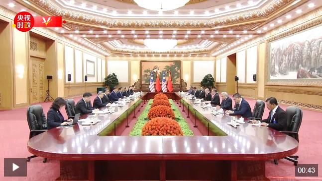 9月20日下午,國家主席習近平在北京人民大會堂同來華進行國事訪問的馬來西亞最高元首易卜拉欣舉行會談。