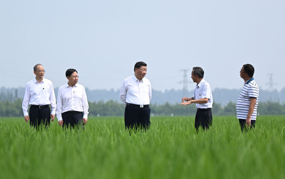 2022年6月8日上午,習近平在四川眉山市東坡區太和鎮永豐村高標準水稻種植基地考察,了解水稻試驗育種和種植推廣情況。習近平強調:推進農業現代化,既要靠農業專家,也要靠廣大農民。要加強現代農業科技推廣應用和技術培訓,把種糧大戶組織起來,積極發展綠色農業、生態農業、高效農業。我們有信心、有底氣把中國人的飯碗牢牢端在自己手中。